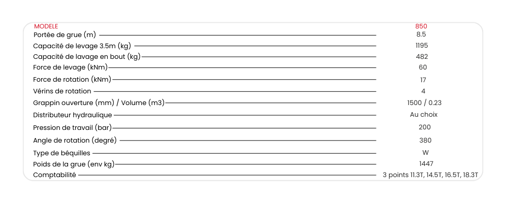 Débit et pression : Vous garantirez ainsi la performance optimale de votre grue et une utilisation dans de bonnes conditions. Grâce à une centrale hydraulique, vous aurez le débit adéquat : si le débit est insuffisant, votre grue sera lente. Si le débit est excessif, votre grue sera brusque, manquera de souplesse et de précision, et les composants subiront un stress anormal, provoquant une usure prématurée du distributeur, des axes, des bagues en bronze, de la tourelle, des vérins et du châssis.